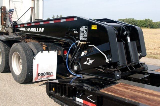 Landoll's detachable gooseneck is second to none in the problem solving category. The rugged scraper style gooseneck with vertical lift cylinders and Landoll's unique fifth wheel lock assembly has the ability to get you hooked up at the roughest job site and on the road. Landoll detachables have a centralized grease system for ease of maintenance and reduced downtime.