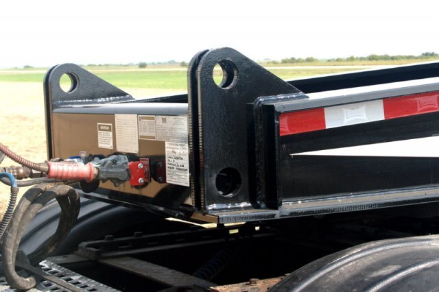 Landoll's detachable gooseneck is second to none in the problem solving category.  The rugged scraper style gooseneck with vertical lift cylinders and Landoll's unique fifth wheel lock assembly has the ability to get you hooked up at the roughest job site and on the road.  Landoll detachables have a centralized grease system for ease of maintenance and reduced downtime.