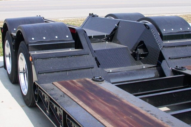 complete packageThe 800 Construction Series is the complete package. Maximum lower deck length allows you to position your loads and scale legally. For heavy loads, the base trailer comes standard with flip axle brackets and air/electrical couplers. To move a permit load with ease, an optional flip axle can be added. The 800C Series is work ready with a flattened front approach, apitong wood in track area, a recessed storage compartment and swing-out overwidth extensions. The front, double outrigger is for added strength at the break over. There are traction bars on the approach and on the front half bolster for added traction. |