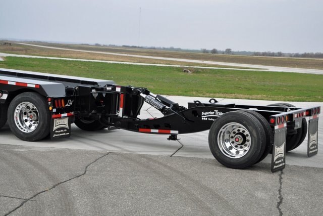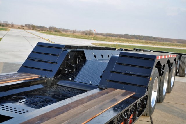 complete packageThe 855C-HD Construction Series is the complete package. Maximum lower deck length allows you to position your loads and scale legally. For heavy loads, the base trailer comes standard with flip axle brackets and air/electrical couplers. To move a permit load with ease, an optional flip axle for four in a row or the Nitrogen Stinger / Spread bar to establish a 14 foot spread between the rear trailer axle and the stinger axle can be added. The 855C HD gooseneck is standard with the flip extension brackets. The optional 36” flip extension allows for swing clearance of a two axle jeep dolly. The Landoll detachable series is work ready with a flattened front approach, apitong wood in track area, a recessed storage compartment and swing-out overwidth extensions. The front, double outrigger is for added strength at the break over. There are traction bars on the approach and on the front half bolster for added traction. |