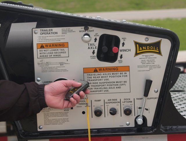 The Landoll 930 Traveling Tail is part of the 900 Series trailers.  The tail is capable of lifting 24,000# up to 53" dock height.  Maximize your loads by utilizing the entire deck and maximize your payload by having the undercarriage five feet behind the main hinge. The longer wheelbase gives you proper weight distribution between tractor and trailer and fully supports the tail.