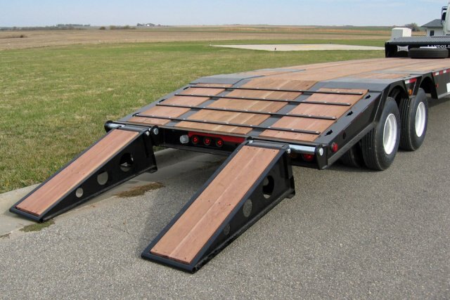 Many Standard FeaturesThe 135 fixed gooseneck still has many of the other great features that you expect from a Landoll trailer such as Grote SuperNova LED lights, a sturdy 1-3/8" apitong hard wood deck, Grote wiring harness, and hub-piloted steel wheels. Optional equipment may be easily added such as air-operated upper deck ramp and hydraulic winches for the upper deck. As with all Landoll trailers, durable powder coat paint is included as well as a zinc-rich powder primer. |