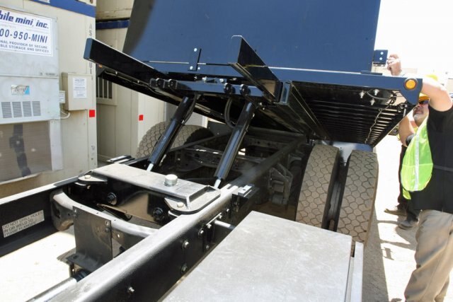 Add an optional complete chain drive system to the Landoll Loadoll II, and you are now set up to haul empty storage containers to a variety of industries.  Plus, you can load and unload the containers with ease and safety in tight spaces with precision and accuracy.