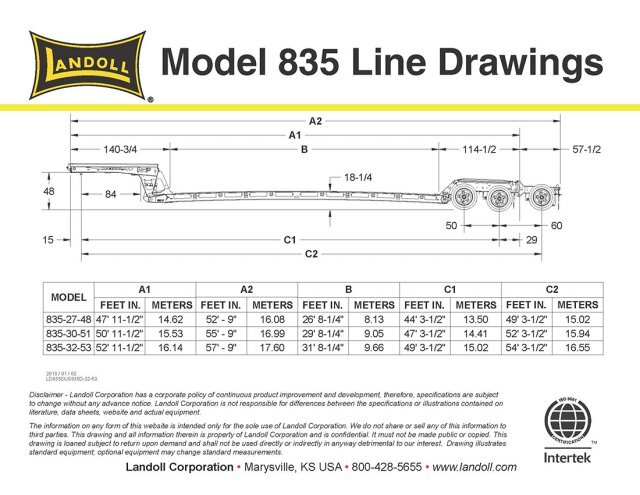 The 835Ag frame design features a flat deck with a loaded height of 18-1/4” off the ground. Coupled with a low tare weight, The 835 can haul the latest combines, tillage, haying equipment and planters with up to 32' of useable deck space.