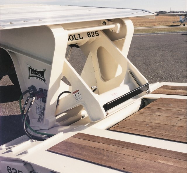 A single hydraulic control lever lowers, detaches and activates the patented gooseneck carrier arms, which allows the ease and simplicity of detaching and loading directly onto the lower deck which is only 11¼” off the ground. You will never have to drive up and over the trunnion again.