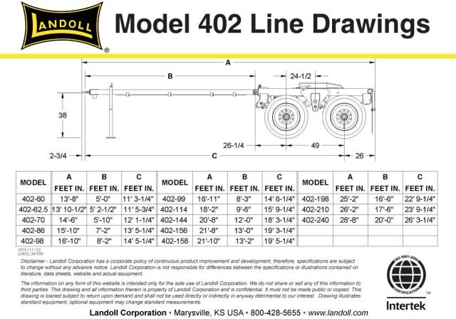 When you need to convert your semi-trailers to trains then just choose the Landoll’s 402B-B Converter Dolly. This tandem axle dolly supports the heaviest payloads with its durable construction and delivers a smooth ride. You choose one of thirteen hitch lengths to create the axle spacing, wheel base and weight distribution that works best in your region.