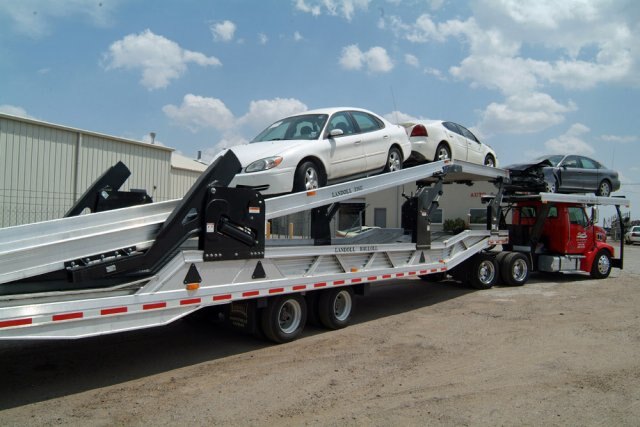 The durable and maneuverable trailer includes rugged guide rails on the lower and upper decks with an adjustable upper deck which allows for easy transition from trailer to overcab.