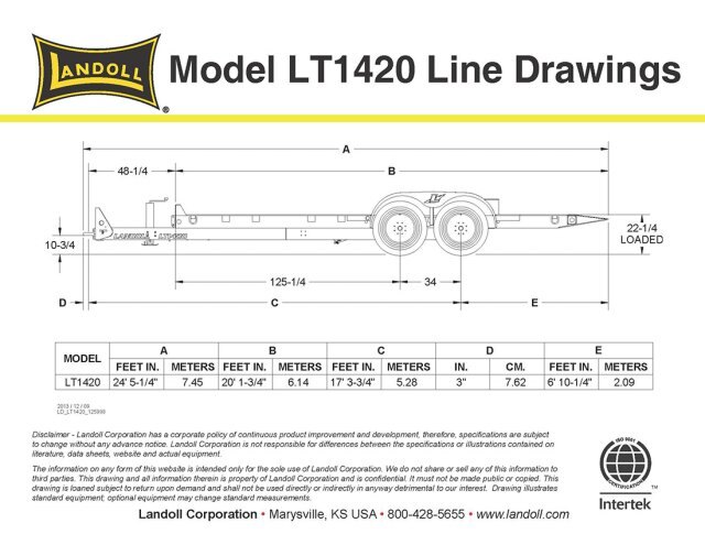 The LT1420 tag offers operators a full 14,000 lb. payload capacity. The trailer features two 8,000 lb. axles with 215/75R 17.5 tires supporting a heavy-duty frame for maximum strength and payload. The tilt deck ground loads at a low load angle of just 10 degrees. The trailer GVWR is 18,200 lbs. A popular option is the heavy duty gooseneck with 2-5/16" ball hitch and built in tool box.