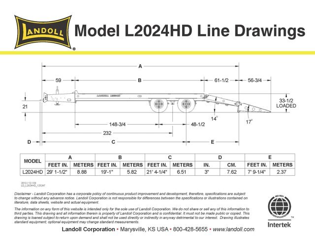 The model L2024HD (heavy-duty) is a full 20,000 lb. capacity industrial tag trailer with a 19' flat deck and 5' beavertail. (26,000 GVW). Standard features include a pierced main beam for a low deck height of 35". Powder coat paint, ten combination stake pocket/chain gotchas are standard equipment along with large axles and tires to provide maximum working capacity.