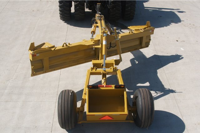 Both models offer raise/lower, blade tilt and right/left angle adjustments from the convenience of the tractor. The cutting edges are easily replaceable. Both units are equipped with ASAE lighting packages to make them street legal. Normal transport width is 9’ 6” on both models. Standard weight boxes on each model hold approximately ½ yard of concrete (1200 to 1500 lbs.) to stabilize the blades against side draft.