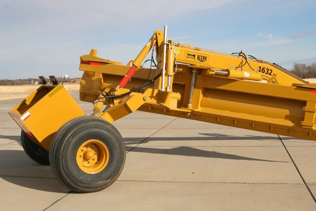The ICON Grader/Box Scraper Series is split into two models, the 1230 and the 1632. The 1230 has a 12' long by 30” high moldboard and the 1632 has a 16' long by 32” high moldboard. The 1632 is also available with the Rear Steer option (model 1632RS).