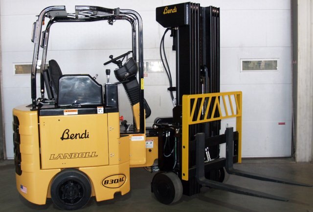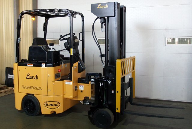 The Bendi model B30AC/B40AC works in aisles as narrow as *78" (1.98M), has a basic capacity starting at 3,000 lbs. (1361 kg) at 24" (600mm) load center and has lift heights available to 26' (7.92M).