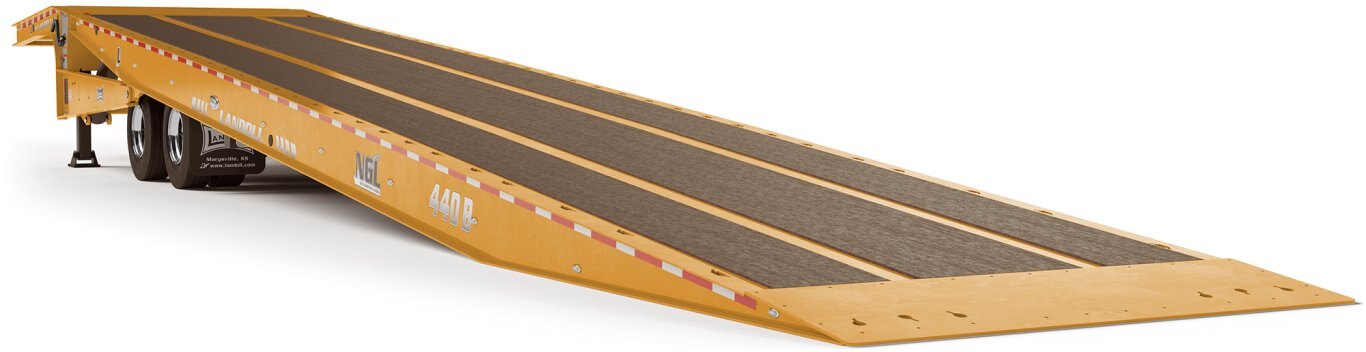 The Landoll trailer line is taking a huge leap forward with the introduction of the all-new Hydraulic Operating Systems (HOSS) and High-Visibility Lighting package. The 440 and 455 B-Series Traveling Axle Trailers are the first models with these newly added standard features.