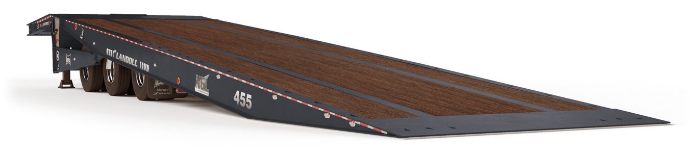 The 455B Traveling Axle Trailer can handle heavy loads with it’s triple axles and 55-ton capacity. Available in lengths of 48’, 50’, 53’, 57′ and California legal 50’. To maximize the load capacity, the 455B includes 60” axle spread standard.