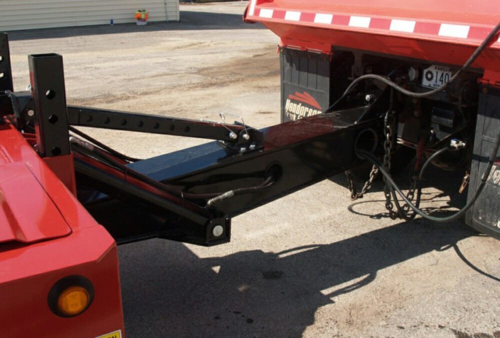 The 345F is designed to be pulled by a tandem-axle dump truck or other heavy-duty truck with pintle hookup. The GVWR of the trailer is 63,500 lbs. distributed and 40,000 lbs. concentrated within 10 feet at highway speeds.