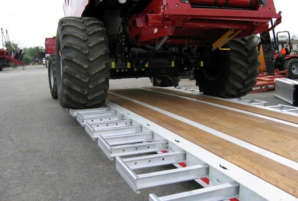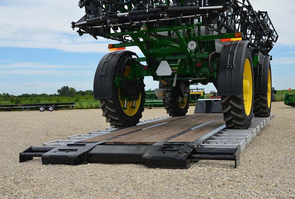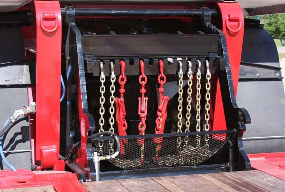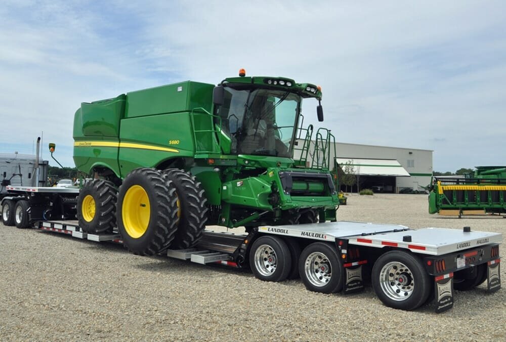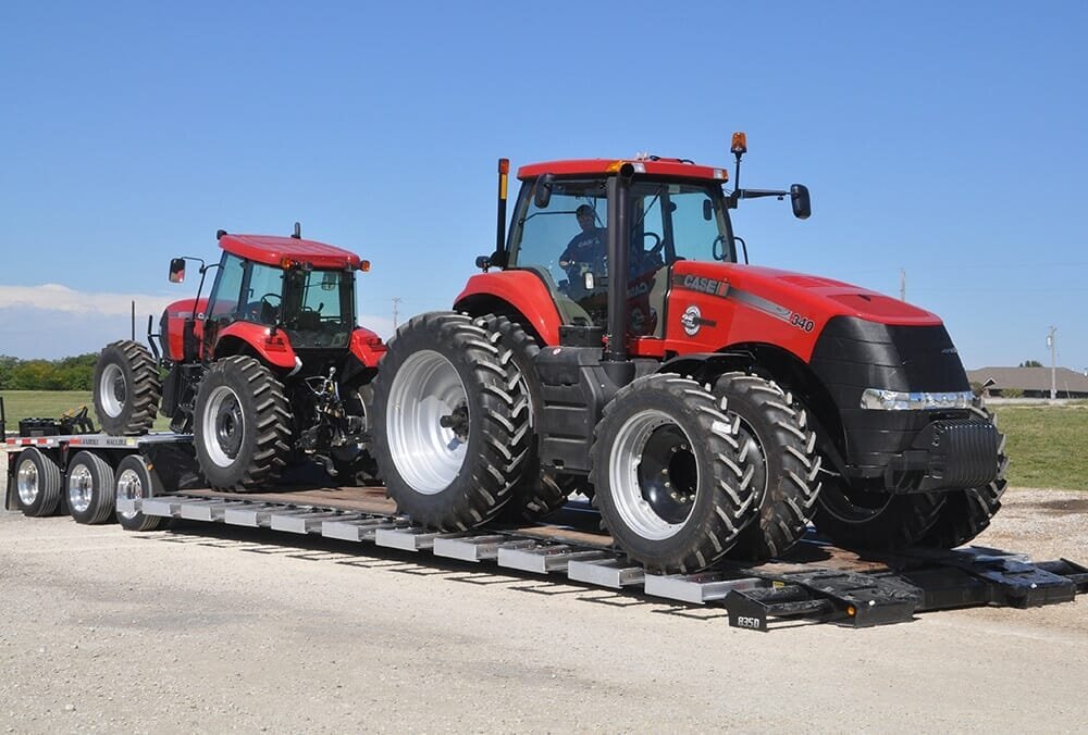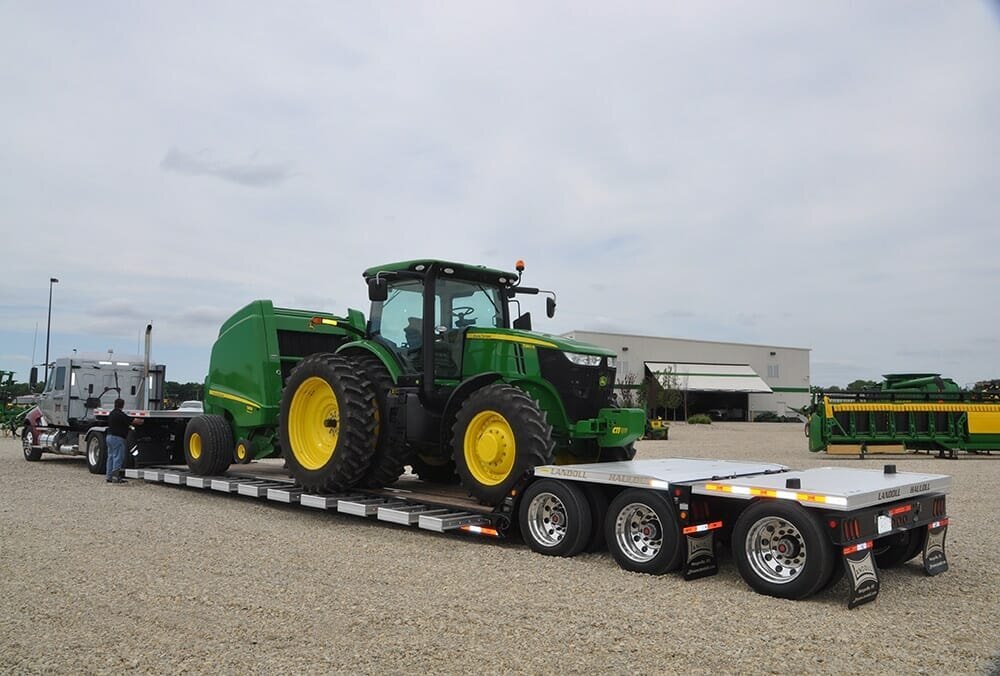 | Capacity* 35 Ton (70,000 lbs.) Deck Rating 60,000 lbs. in 12′ Estimated Base Weight 18,000 lbs., (835AG) +/- 3% Main Frame Fabricated 11 1/4″ Beam, 100,000 PSI Yield Flanges Deck Width 102″ Loaded Deck Height 18-1/4″ Loaded Ground Clearance 7″ Decking 1-1/2″ Apitong, Full Width Crossmembers 5″ x 3″ Rec. Tube on 18″ Centers Hitch Patented Automatic Gooseneck Lock Engagement Gooseneck 11′ 9″ Pin Setting 15″ Swing Clearance 84″ Side Extension 27″ Aluminum Telescoping Side Extensions (Lower Deck) Accessories 835AG – 48′, 51′ or 53′ Frame Prepared with Bkts, Electric and Air for 3rd Axle Flip Tool Box None Standard Gooseneck Tie Downs D-Rings: (2) Each at Front Corner; (2) Each at Back Lower Deck Tie Downs Side Mounted Nylon Strap / Chain Tie Downs; Side Mounted D-Rings on 36″ Centers Rear Trunnion Tie Downs D-Rings: (2) Each at Base Flush Mounted on Top of Inner Beams; (2) Each Web Mounted on Top; (2) Each Rear Flush Mounted on Top of Inner Beams; (2) Each Top of Slope (Outer web) |