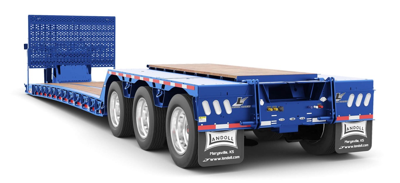 Landoll, working in collaboration with Grote Industries, offers new LED diode maker lights to maximize the luminous output with up to 22 lights on every trailer. The rear-facing DOT lights have also been enhanced by adding the fourth tail-turn light to the mud flap bracket. This High-Visibility Light Package substantially increases awareness and is standard equipment on all 400 and 800 series trailers. Get the most from your equipment dollars, work safely at night, and get the highest return on your investment with a Landoll Detachable or Traveling Axle Trailer from the world leader in equipment trailers – Landoll. |