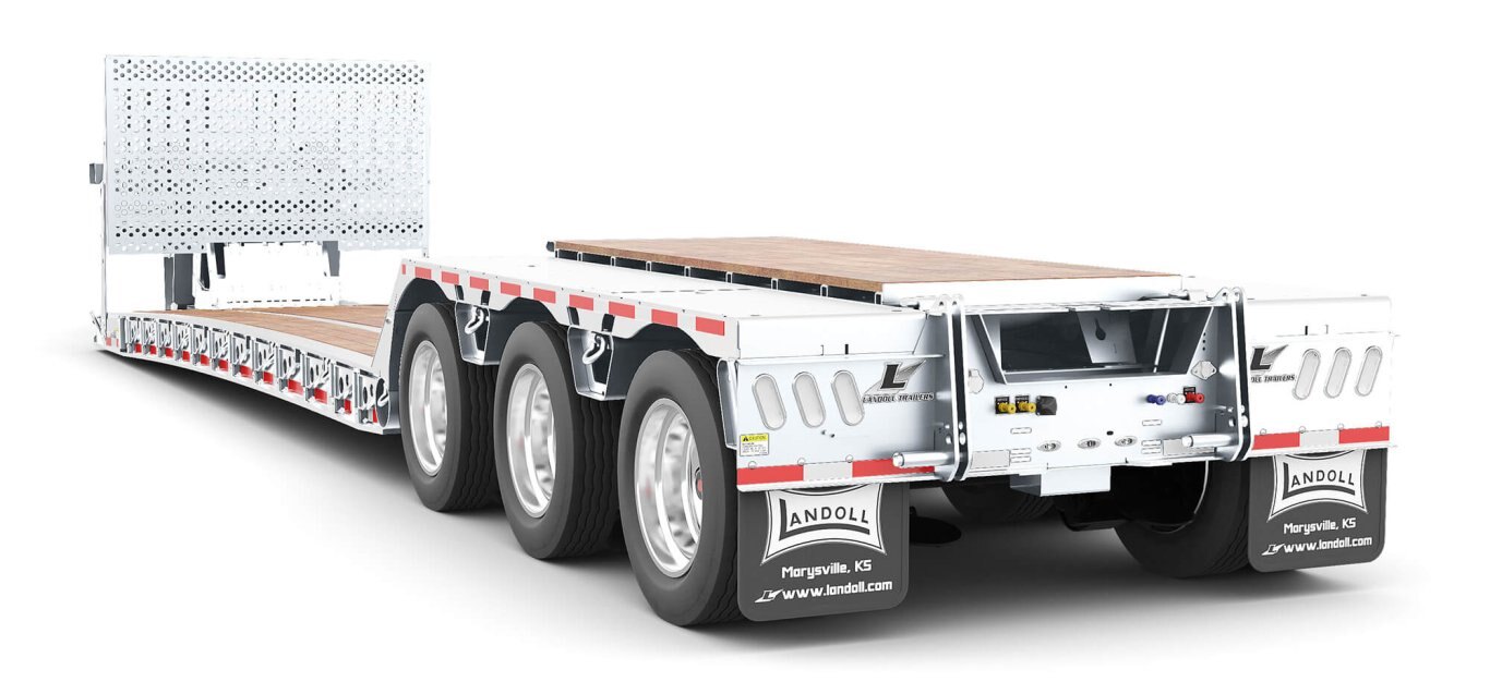 Landoll, working in collaboration with Grote Industries, offers new LED diode maker lights to maximize the luminous output with up to 22 lights on every trailer. The rear-facing DOT lights have also been enhanced by adding the fourth tail-turn light to the mud flap bracket. This High-Visibility Light Package substantially increases awareness and is standard equipment on all 400 and 800 series trailers. Get the most from your equipment dollars, work safely at night, and get the highest return on your investment with a Landoll Detachable or Traveling Axle Trailer from the world leader in equipment trailers – Landoll. |
