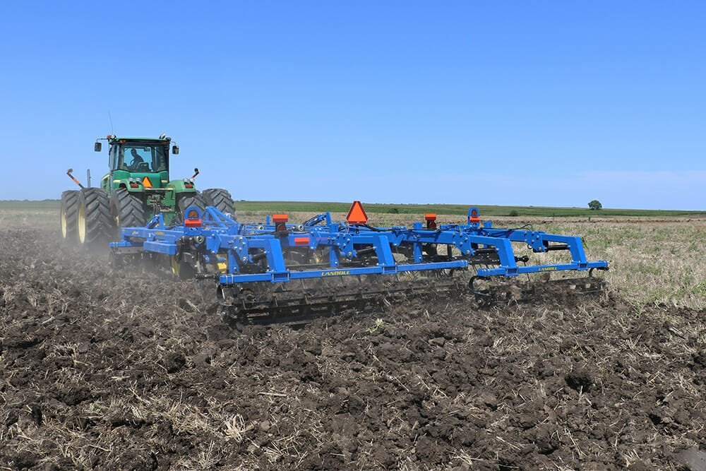 The coulter chisel concept has been used for decades as an alternative primary tillage practice.  The newly redesigned Landoll 2100 Series Coulter Chisel incorporates this concept into high capacity.  This translates to handling heavy residue at higher speeds with maximum efficiency.  Cover more acres per hour using less horsepower per foot than conventional disc rippers.