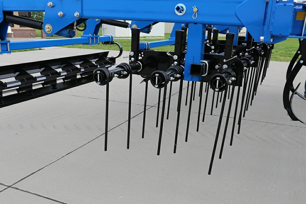 The 2100 Series Coulter Chisel can also be outfitted with just the three-row coil tine harrow or just the chopper reels.