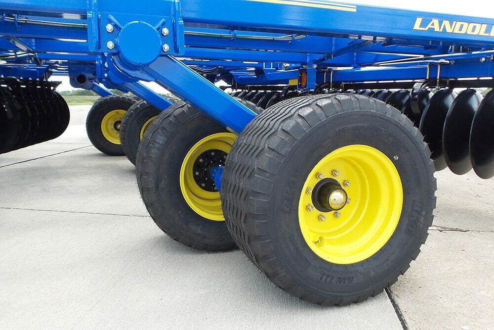 | 14′ Rigid and 23′, 26′, 29′, 32′, 35′, 40′ and 45′ Folding Units Available 24″ Low Concavity Blades with 7″ Spacing with Infinitely Adjustable Gang Angles from 5 to 15 Degrees; Adjustable On the Go Trunnion Bearings with Triple Lip Seals Mounted on C-Cushion Bearing Standards Adjustable 5 1/2″ Scrapers with Heavy-Duty 1/2″ Spring Steel Arm Scraper Mounting Bracket Attached to the C-Cushion Bearing Standard 5 1/2″ Lift Axles With Maintenance Free Lift System Walking Tandems and Greaseable Pivots Radial Tires with 8-Bolt Wheels and 3″ Slip-In Spindles (Model Dependent) |