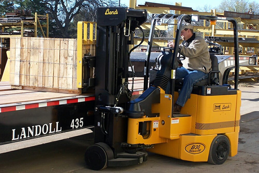 The versatile Bendi B30AC/B40AC forklift replaces conventional reach and counterbalanced fork trucks in standard warehouse operations. The unique design allows operators to use it as a counterbalance truck indoors or out, yet operates in narrow aisles in your warehouse, replacing reach trucks that require much wider aisles. This forklift can go from inside the truck to the rack eliminating staging and additional operators and support forklifts. |