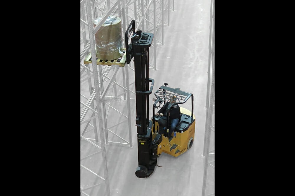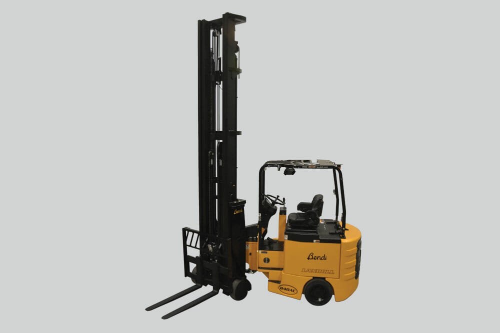 They are a 4-wheel articulating forklift with dual independently driven rear-drive tires and soft-poly front load tires. The Bendi B40AC-HL and B50AC-HL can work inside and outside on paved surfaces and have a floating front axle allowing the trucks to ride smoothly over uneven floors. They can do the same jobs as reach and counterbalanced trucks but in much narrower aisles. |