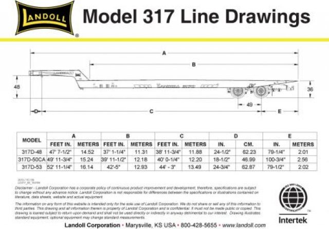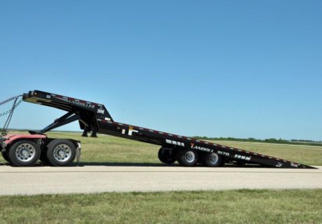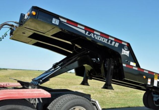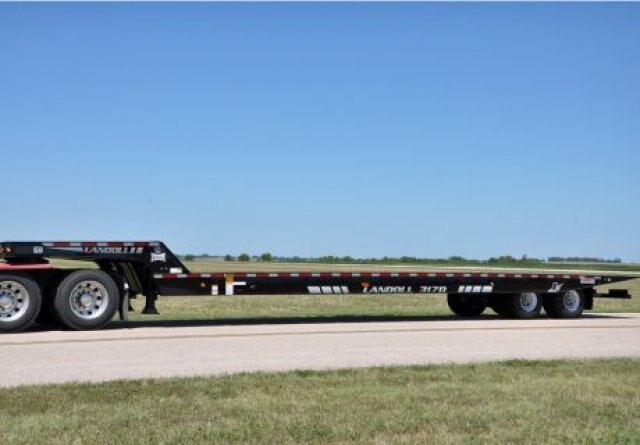 The 317C 35-ton capacity trailer features a one-piece, 4-beam frame designed with low-load and a 29-inch full width, rigid flat approach plate. Landoll's full tilt trailer gives the operator full control of the trailer and heavy loads. The 317 features a six roller undercarriage with the entire frame lifting up from the fifth wheel. Landoll’s approach plate can be used for additional load deck space and has four tie-down chain slots. The 317 is nicknamed the OLD WORKHORSE because of its' decades of dependable performance and durability.