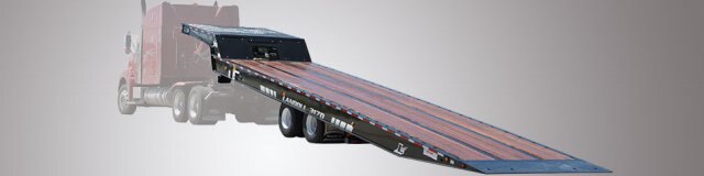 Computer designed fabricated steel beams incorporated with high tensile strength Jr. I-Beam crossmembers provide unsurpassed strength while offering substantial weight savings. The undercarriage roller bearings lower the deck into patented pockets fabricated from 100,000 PSI steel and align the axles. The trailer also features an e-chain flexible conduit to protect the hydraulic and electrical lines while the undercarriage travels.