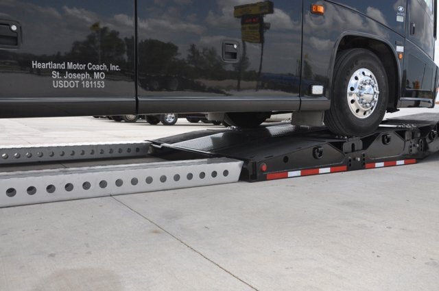 Landoll brings this new design down to 5° load angle. Buses and RVs require the lowest possible load angle and the 353 gets you there. The Model 353, a 35 ton three axle trailer, is designed to handle even the heaviest of motor coaches. The three axle undercarriage has air ride suspension, 25,000 lb. axles and most importantly a 132” axle spread. Every bus is different and you can operate under legal weight limits or maximize the axle group when needed under permit.