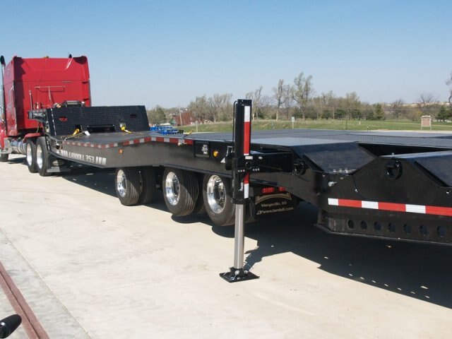 The Model 353 double drop trailer was designed to transport a wide variety of oversize, over-height equipment such as motor coaches, metro buses, shuttle buses or Class B and C motor homes.  The 353 has a full width front well that allows for a deck height of just 26”. The rear tandem wheel well pockets are equipped with Landoll’s “Mechanical Wheel Well Lifter”. You have all trailer hydraulic functions at your fingertips with the standard wireless remote controls.