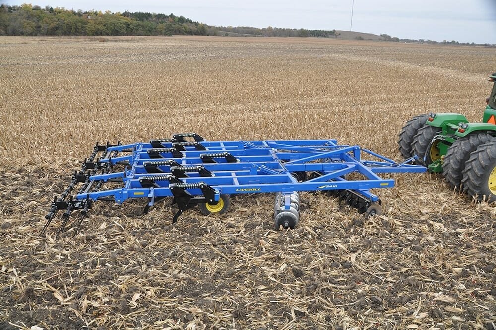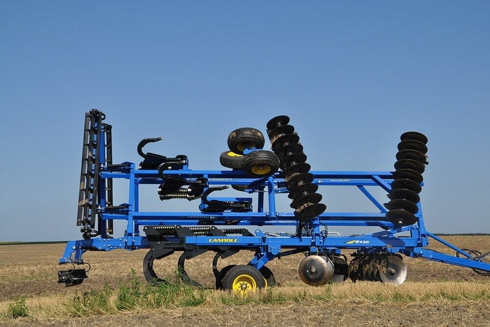 Practical Tillage EconomicsThe Landoll 2400 Series Weatherproofer 1 (WP1) offers a combination of parabolic ripper shanks and tandem disc gangs that provide the most effective primary tillage tool in the market place. The ability to manage the soil, water, and residue all with a single pass is exactly what the industry has been asking for. The 2400 Series Weatherproofer 1 fulfills this need. |