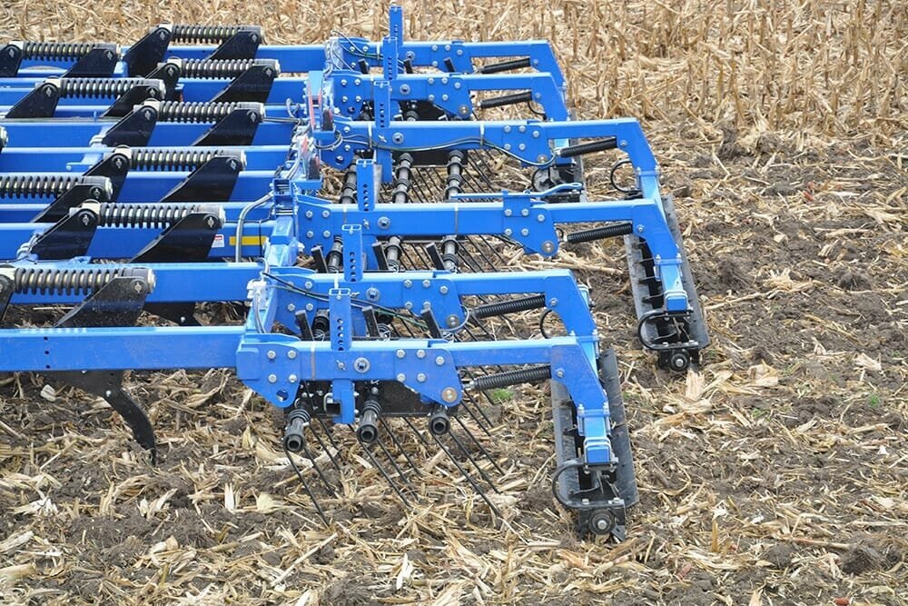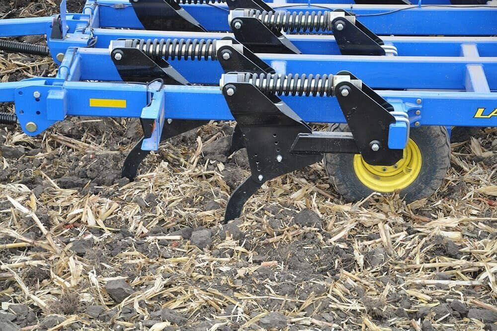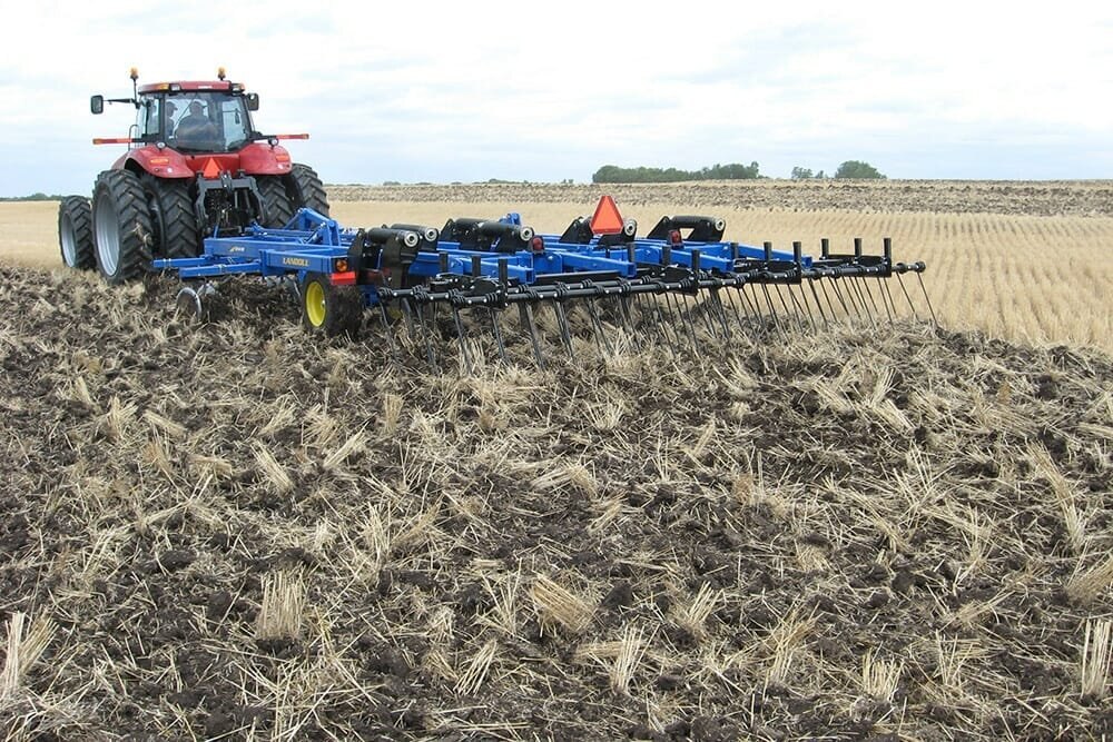 Sizes to FitLandoll has designed the 2400 Series in sizes to fit a wide variety of operations. Starting with the rigid frame in 6, 7 and 9 shank models (7 and 9 shank models are available with folding frames for 14’ 6” transport width) all the way up to the folding 11 and 13 shank models, the basic configurations are the same. Tandem offset disc gangs located upfront cut, size and blend the residue with auto-reset ripper shanks following to facilitate soil management and compaction control. 24” shank spacing on all models provides ultimate fracturing of soil profiles to allow water and oxygen to enter into the growth environment. Optional rear leveling devices allow the operator to choose the best match for his expectations and needs. |