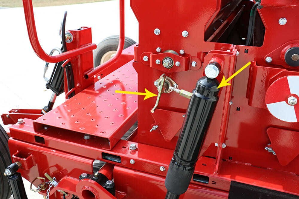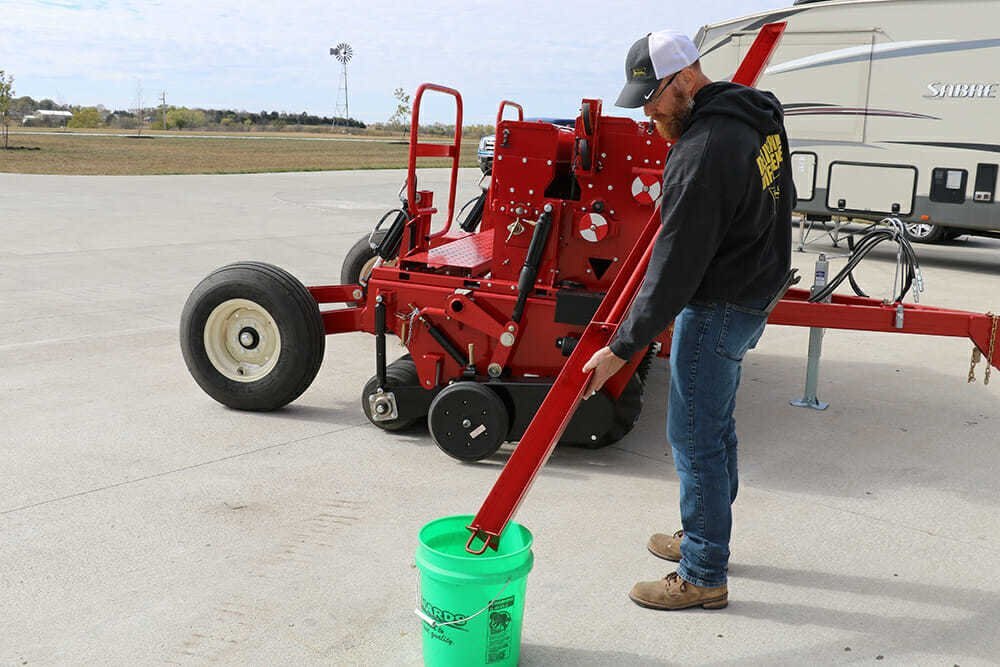 Built-in parking stands allow three-point hitch models to be safely detached from the tractor without the fear of tipping. A built-in walk-board with steps and handrails on the rear of the unit allows for easy filling of the seed boxes. Built-in tie down lugs are included for securing the Till ‘N Seed to trailers for transport. A seed calibration tray makes custom seed rate calibration easy is conveniently stored on the machine when not in use. Seed box disconnect pins disengage seeding mechanisms when the unit is used in tillage-only mode. |