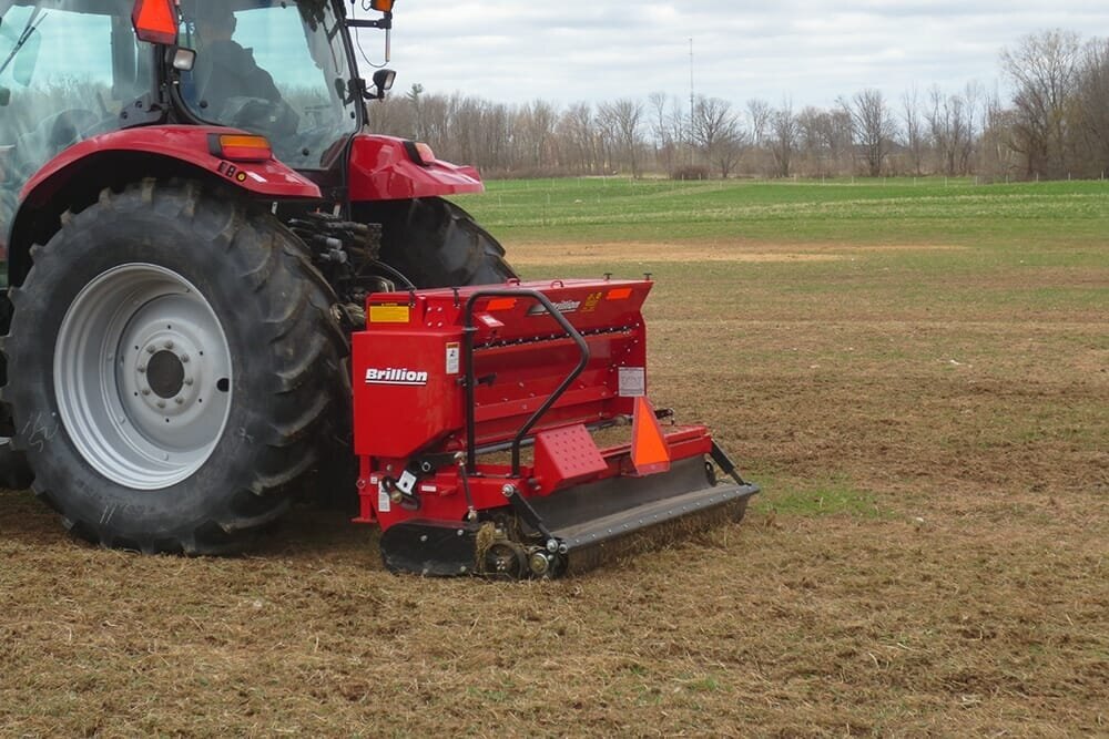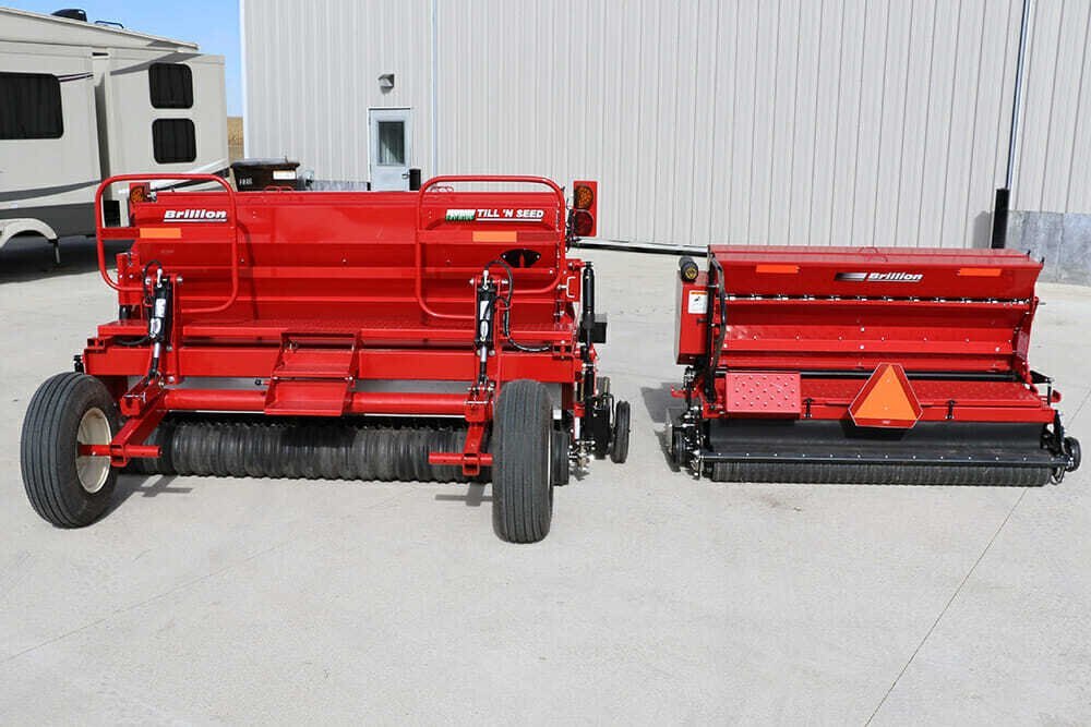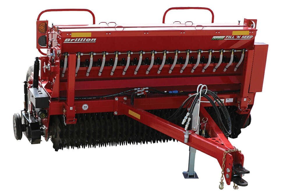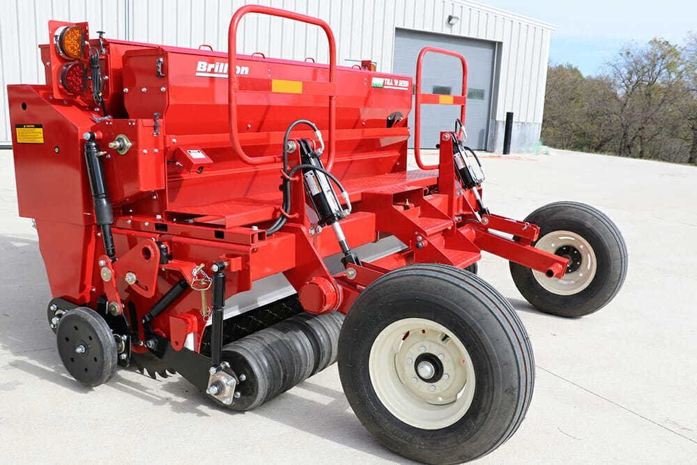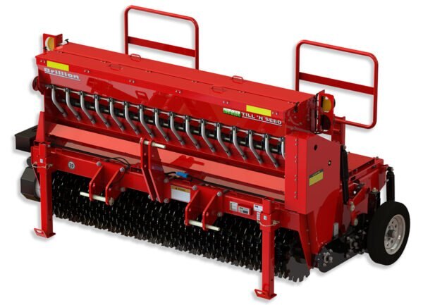 8′ Pull-Type and Three-Point Hitch Models Available Cat. II Drawbar on Pull-Type Models (2) 9.5L x 15-8 Ply Tires on Pull-Type Models Three-Point Hitch: Cat. II, III Free Link Three-Point Hitch: Cat. II, IIIN, III Quick Coupler Hitch Can be Moved Off-Center for Use on Wider Tractors on Three-Point Hitch Models Drive and Tillage Rotors Made of Abrasion Resistant Steel Tillage Rotor Runs 2.14 Times Faster than Drive Rotor #60-2 Drive Chain Tillage Rotor Free to Follow Ground Contour Rotors Mesh Together for Self-Cleaning Design Adjustable Air Shock Pressure for Varying Ground Conditions Heavy-Duty 1 1/2″ Sealed Bearings on All Rotor Shafts Adjustable Gauge Wheels Control Depth of Tillage Rotor Rubber Firming Roller Provides Final Touch for Ideal Seed to Soil Contact Small Micro-Metered Front Seed Box for Seeding Smaller Seeds Large Micro-Metered Second Seed Box for Planting Larger Seed Varieties Optional Third Seed Box: Blade Agitator for Seeding Larger Grass Seed Varieties User Friendly Seed Rate Adjustments Seed Box Disconnect Pins Disengage Seeding Mechanisms Slide-In Seed Calibration Tray Stores on Machine When Not in Use Handrail, Step, and Walkboard Provide for Operator Safety Convenient Brackets Included for Securing Machine to Trailers Integral Parking Stand Parking Pin Allows Unit to Maintain Correct Orientation When Unhitched from Tractor on Three-Point Hitch Models Electronic Acre Meter Available Optional Dual Wheel Kit Available for Pull-Type Models LED Safety Warning Lights & SMV Emblem Powder Coat Paint |
