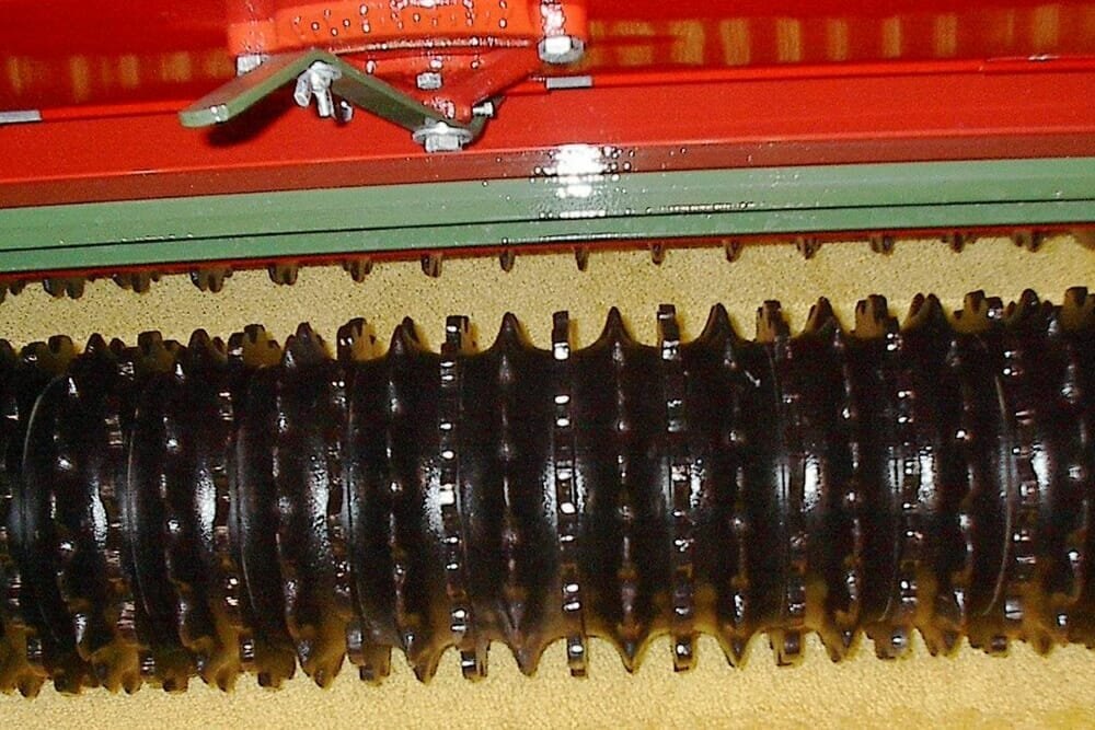 The 6′ model also has a front spike roller option for light tillage action in certain conditions. A coil tine track remover is provided as standard equipment on all models. Optional equipment includes Turfmaker sprockets for the rear roller, brush agitator kits for inside the seed box and an electronic acre meter.