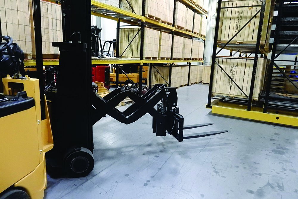 | Four Wheel Design, Dual Rear Wheel Drive 8” (200 mm) Stroke Integral Side Shifter 41” (1041 mm) Stroke Integral Pantograph Reach 52” (1321 mm) Reach From Face of Mast 33” (838 mm) Wide Tilting and Side Shifting Fork Carriage Adjustable Seat and Steering Wheel Rotation via DuraSteerTM Actuator, with 5-Year Warranty on Articulation |