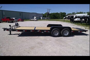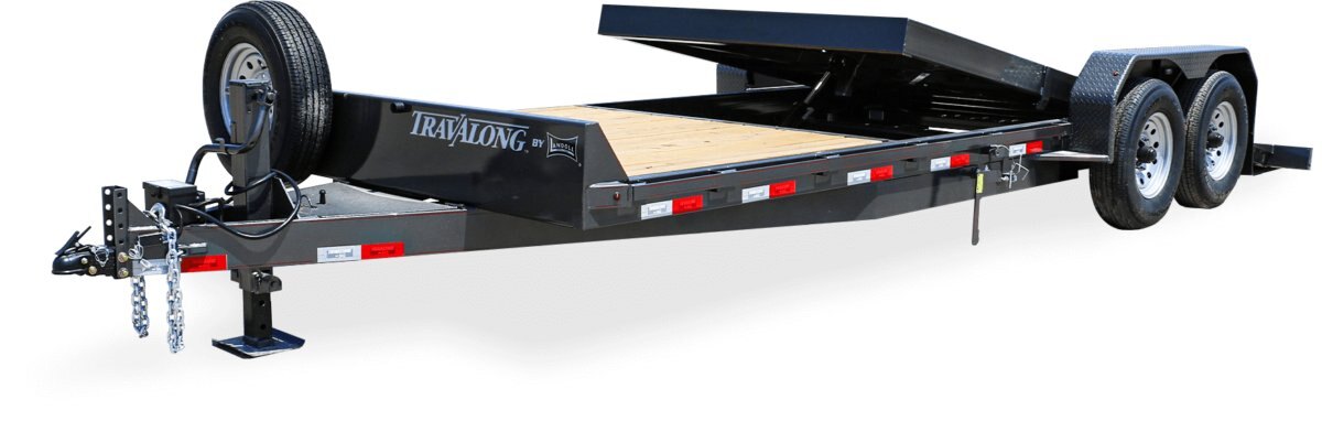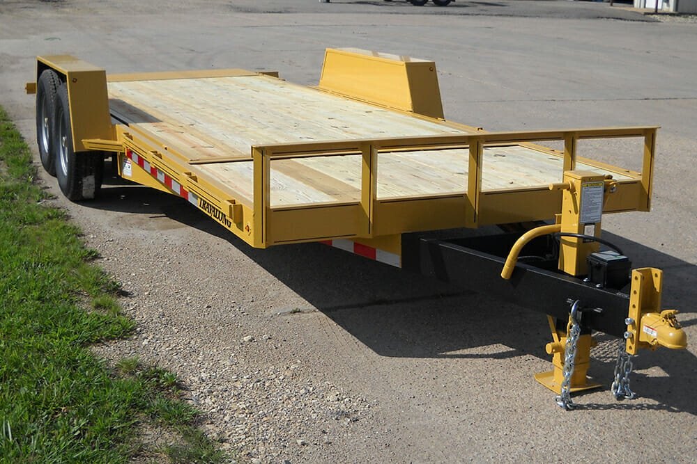 | Hydraulic Lock Valve & Pressure Tank 74″ Wide Tiltable Deck 2″ x 16″ Dampening Cylinder 22″ Deck Height Radial Tires Safety Chains & Hooks 14 gauge Treadplate Fenders Breakaway Battery and Maintainer LED Lighting 11 Degree Tilt Spare Rim Stake Pockets & Rub Rail |