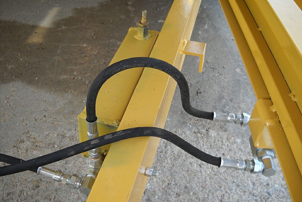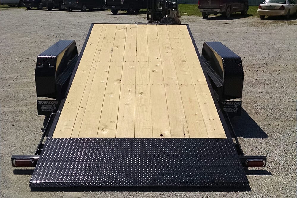 | Width 82.5″ Between Fenders 10″ Angle Front Rub Rail Frame: 6″ Channel 7 Prong Heavy Cord with Junction Box Tongue: 6″ Channel Coupler: 2 5/16″ Adjustable Ball Crossmembers: 3″ Channel on 16″ Centers Spring Retraction Dropleg Jack 7000# Torsion Axles with Electric Brakes Dual Lock Single Release Bed Lockdowns Treated Wood Floor |