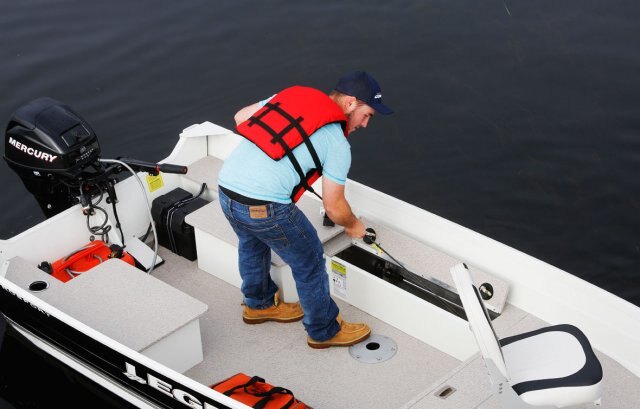 Store your rods quickly and safely with the port side drop-in rod box.