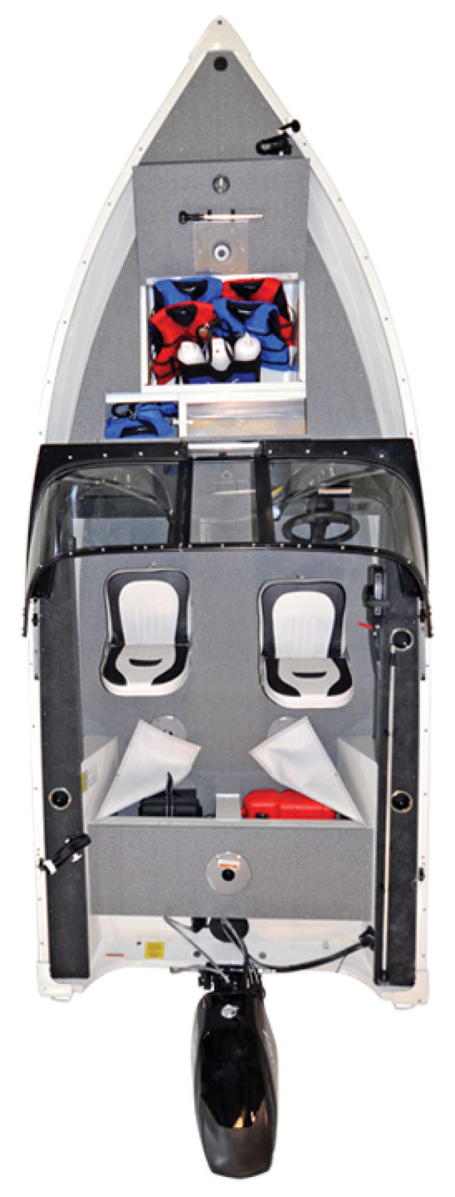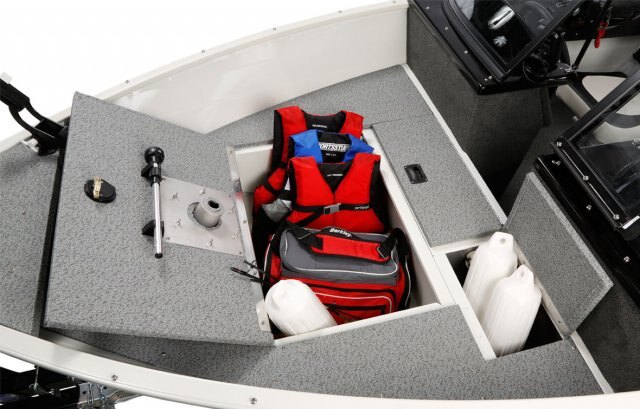Gives you room to fish and store two fuel tanks and a battery. |
