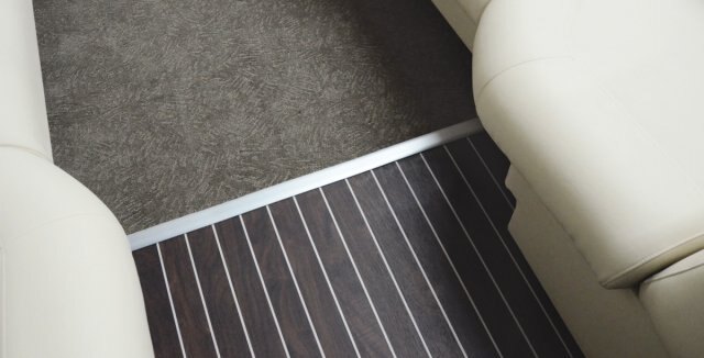 Rich mahogany and ivory vinyl front and rear decks for easy cleanup. |