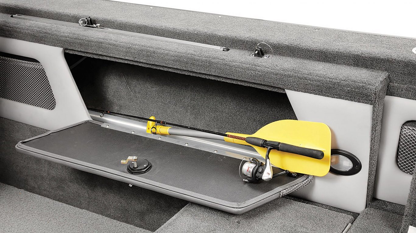 The lockable side storage compartments go all the way up to the consoles and all the way back to the stern, offering tons of room for your gear and valuables. |
