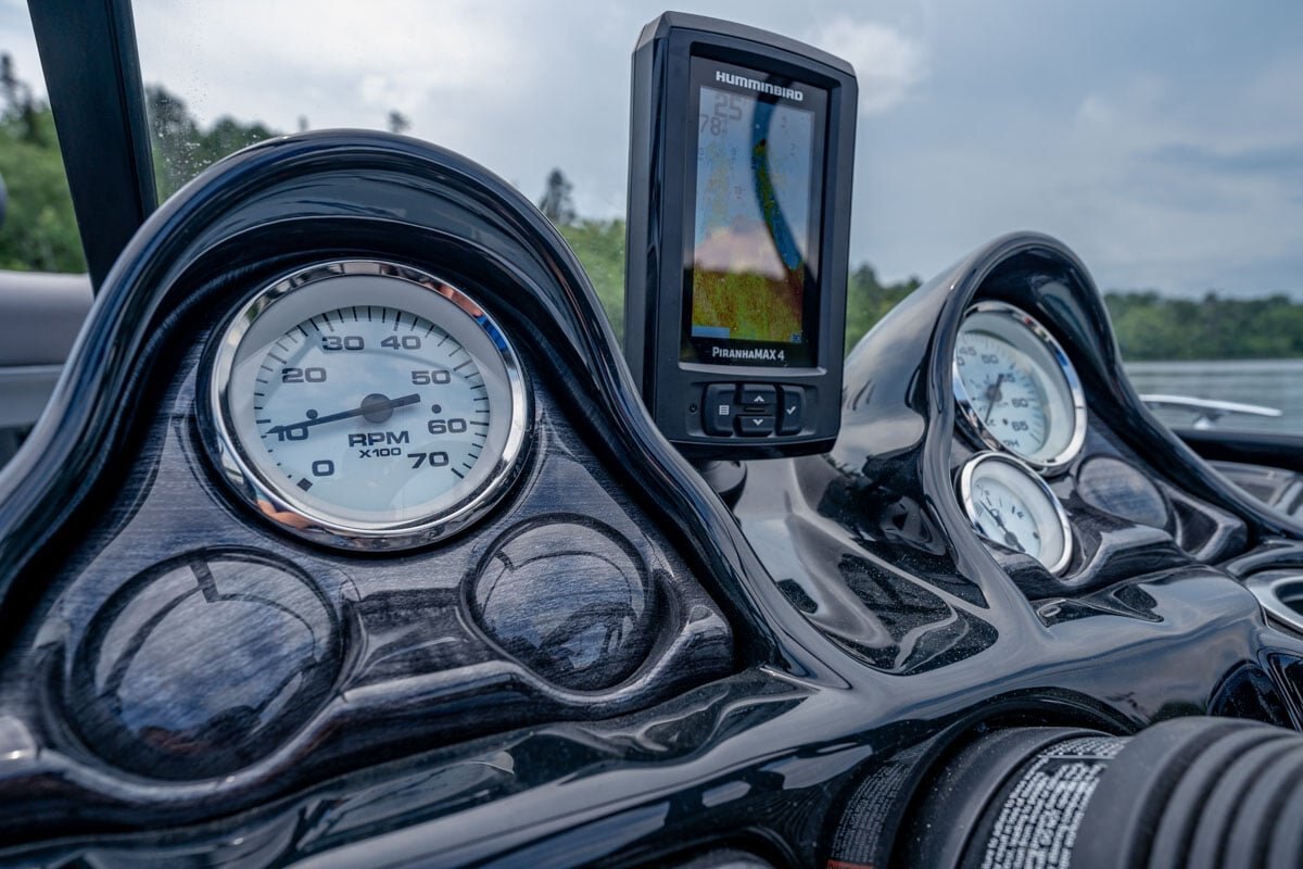 Bluetooth stereo, fish/depth finder, and illuminated gauges and switches.Everything you need to be out on the water, day or night. The fishfinder, gauges and switches are all within reach and illuminated for use at night. |