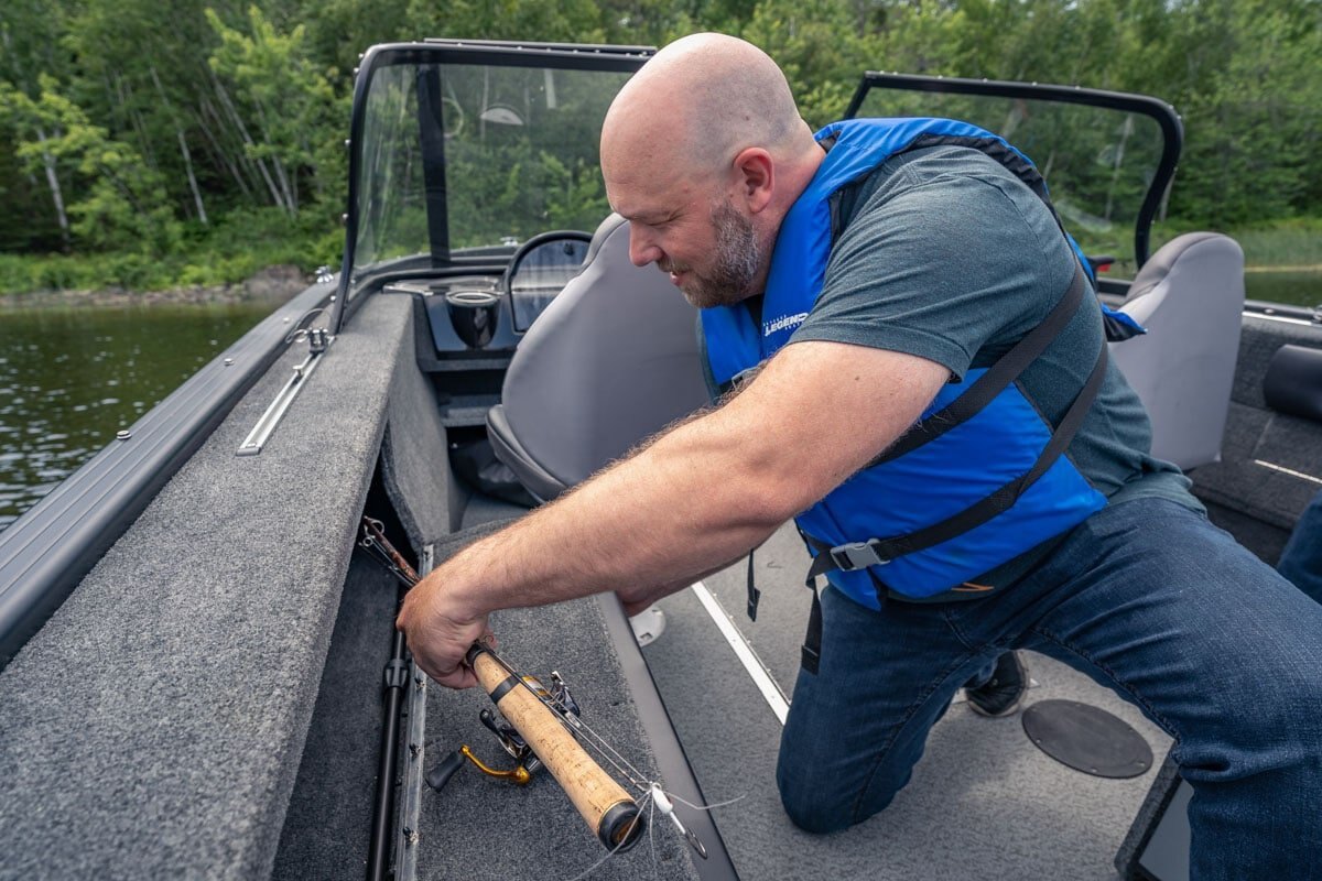 Massive bow casting deck with tons of storage for all your gear and more.Ample storage underneath an all-vinyl, easy-to-clean front casting deck. |