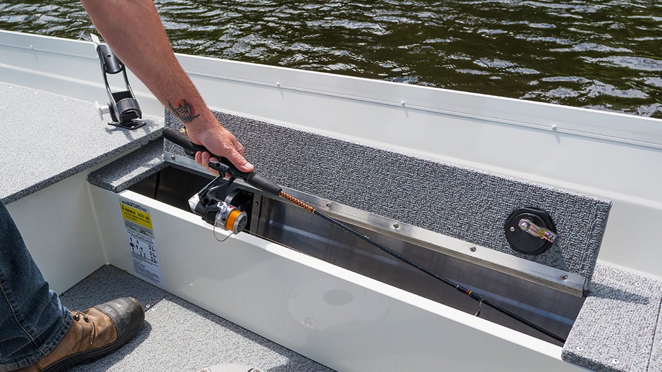 You want as much room as possible when you’re out on the water. Safely store your rods and gear out of the way along the side of the boat.