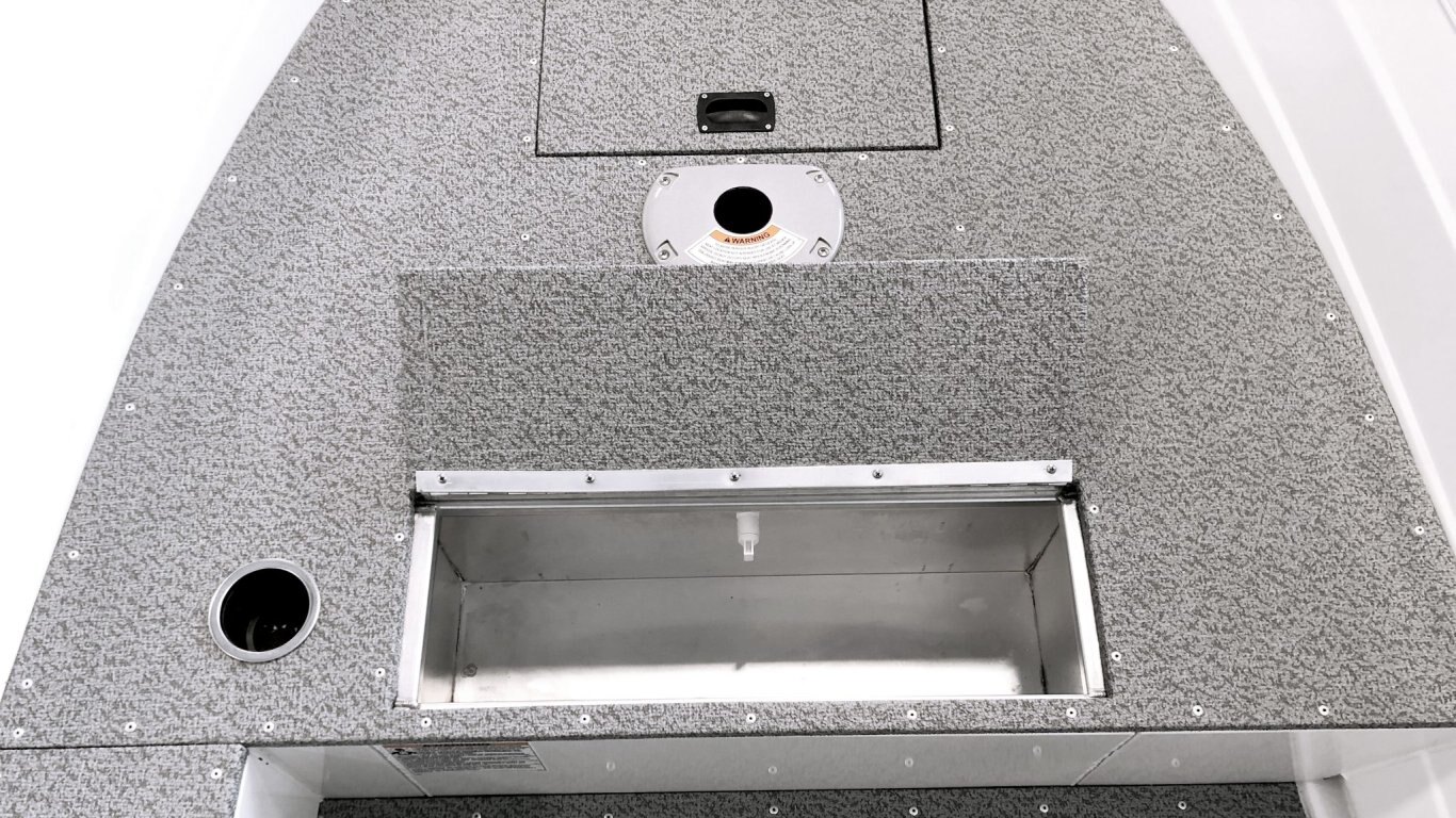 Decks and Storage Large front casting deck with oversized storage Bow deck for easy electric motor installation Rear fuel tank and battery storage area 2 drink holders 6.5' Port side lockable rod box Ez-clean dura-deck all-vinyl interior