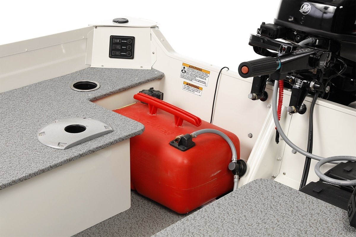 Construction .100 gauge one-piece aluminum seamless hull bottom 5º deep-v hull with hard chines Multiple .100 gauge bow ribs for maximum strength .100 gauge full-width bottom ribs 3 full-length .100 gauge keels Full-length molded splash rails Heavy-duty transom knee brace Aluminum bow with integrated grab and mooring handles Stainless steel bow eye or lift handle Stainless steel transom eyes or lift handles Ez-grip gunnel Level foam floatation Treated 7-ply marine-grade plywood floor and decks High-gloss oven-cured urethane exterior paint 3M highly reflective safety striping on Legend name