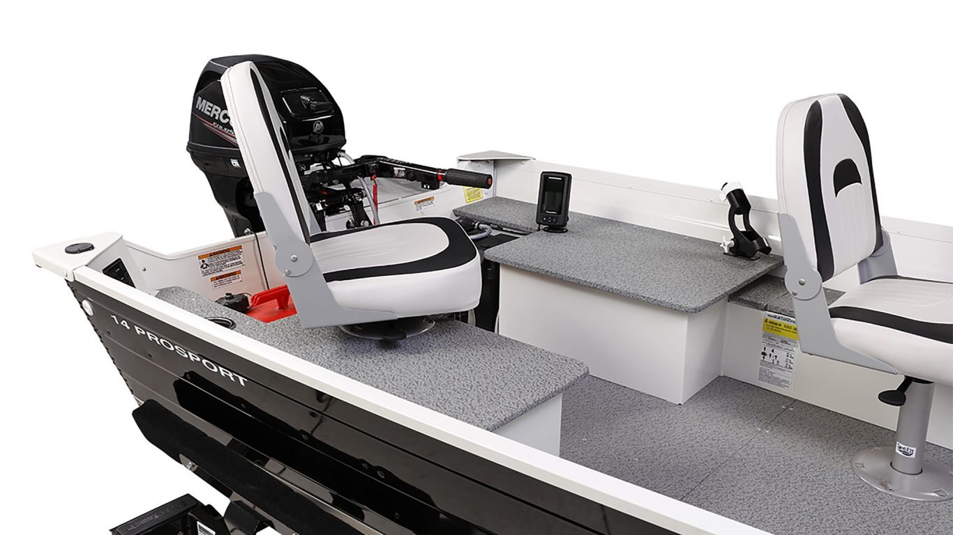 The 14 ProSport has everything you need: a lockable rod box, a big livewell, a huge front casting deck with storage and the vinyl interior makes it easy to keep clean. And, with this boat, you never have to jump over benches again! It makes fishin’ easy.
