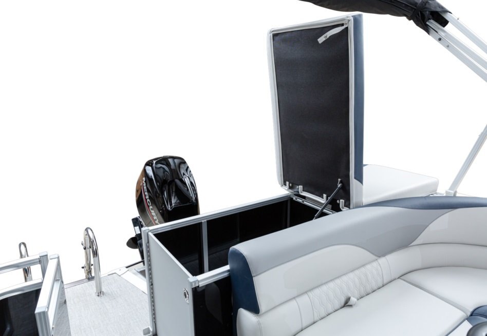 The pure pontoon experience: a stable deck and comfortable seating on top of high-performance tubes and a powerful Mercury motor.